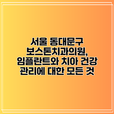 서울 동대문구 보스톤치과의원은 임플란트 시술 뿐만 아니라 다양한 치과 치료를 제공합니다. 여러분이 안전하고 효과적인 임플란트 시술을 원하신다면, 전문 의료진에게 상담을 받는 것이 중요합니다. 치아 건강은 삶의 질을 높이는 가장 기본적인 요소입니다. 이제는 행동에 옮길 때입니다. 보스톤치과의원에서 여러분의 소중한 치아를 지켜보세요!